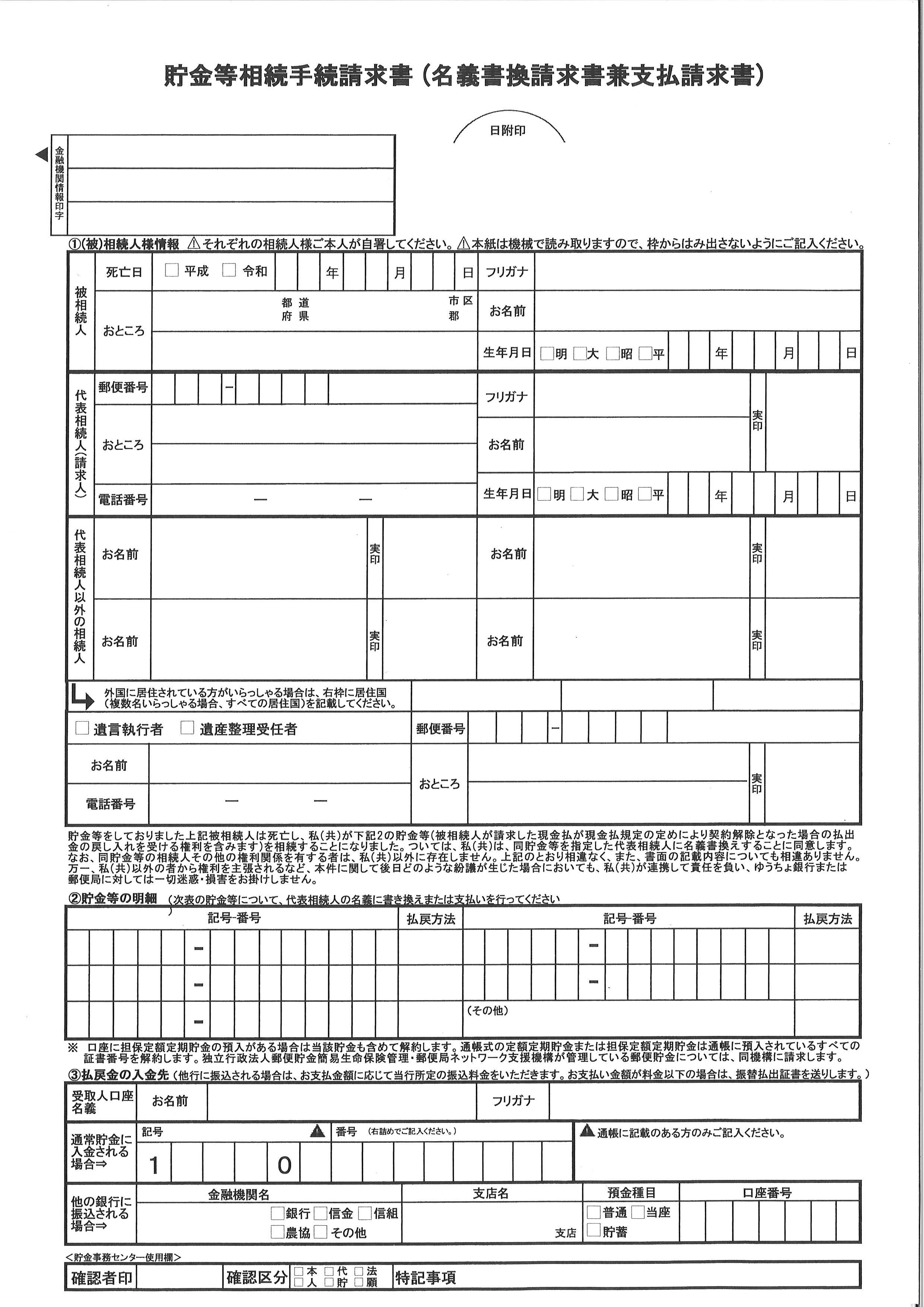 各相続人に振込してくれるとは違い、ゆうちょ銀行では代表相続人一人にしか振り込みしてくれないことに変更はありませんでした。次はこちらを改善してくれるといいですね。